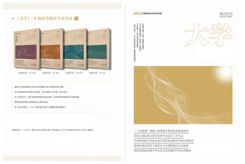 《大学》系国家新闻出版广电总局第一批认定学术期刊,中国学术期刊综合评价数据库来源期刊,中国科技引文数据库(SCD)、中文科技期刊数据库、中国核心期刊(遴选)数据库等大型数据库收录期刊,中国知网(CNKI)数据库全文收录期刊。在本刊发表的论文可在职称评定、晋升考核以及岗位竞聘中起到重要科研认定作用。